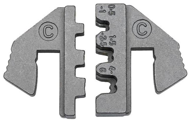 - Crimp-Einsatz C: für offene, unisolierte Kabelschuhe 0,5 – 6,0 mm2 (Breite bis 6,3 mm)