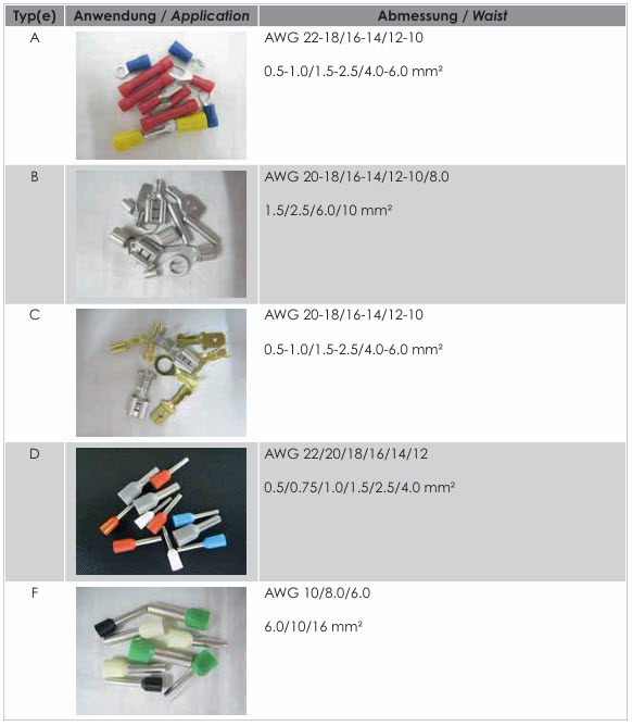 - Crimp-Einsatz F: für Adern-Endhülsen über 6,0 mm2
